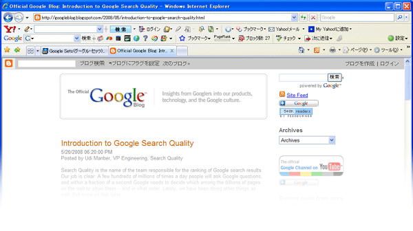 2008年5月20日 午後6時20分 にGoogleのオフィシャルブログ上で、「Introduction to Google Search Quality」(グーグルの検索品質の提唱)というタイトルで、Udi Manber 氏により公開されました。※このUdi Manber氏は、 GoogleのSearch Quality team(検索品質チーム)のVice President(副総裁)に位置する人です。
