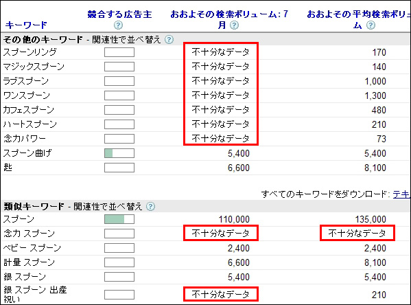 > グーグルキーワードツールの「不十分なデータ」とは?