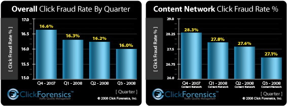 今回、米国Click Forensicsがオンライン広告主および広告代理店4,500社以上に対して行った調査結果によると、2008年前期の16.2%と比べると、若干ではあるが減少しているものの、以前16%と高い数値を示しています。