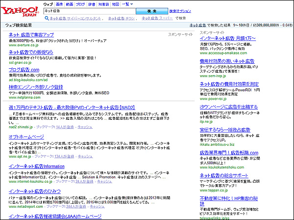 本日、ヤフーの検索結果に表示されるスポンサーサイトの背景色が無色になっています。