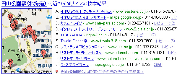 ちなみに、ヤフーとグーグルで、「イタリアン 円山公園」と検索してみます。