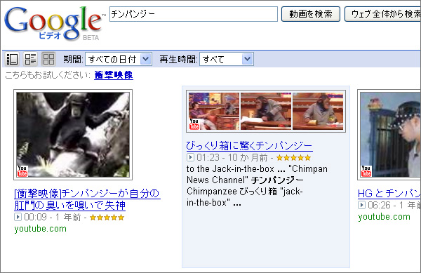 Googleビデオは、YouTube、ニコニコ動画、Askビデオなどの動画共有サイトなどに公開されている動画を中心にインデックスするようです。